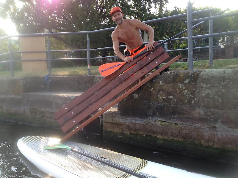 Müllbeute von Dimitri; Main SUP-Rettung einer Parkbank