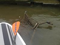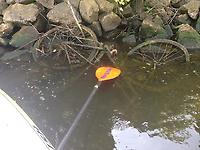 Die von Unbekannt erlegte Müllbeute (Einkaufswagen, Safe, Fahrrad)